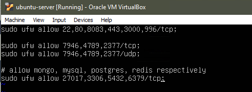 ufw allow 80,443,3000,996,7946,4789,2377/tcp; ufw allow 7946,4789,2377/udp;