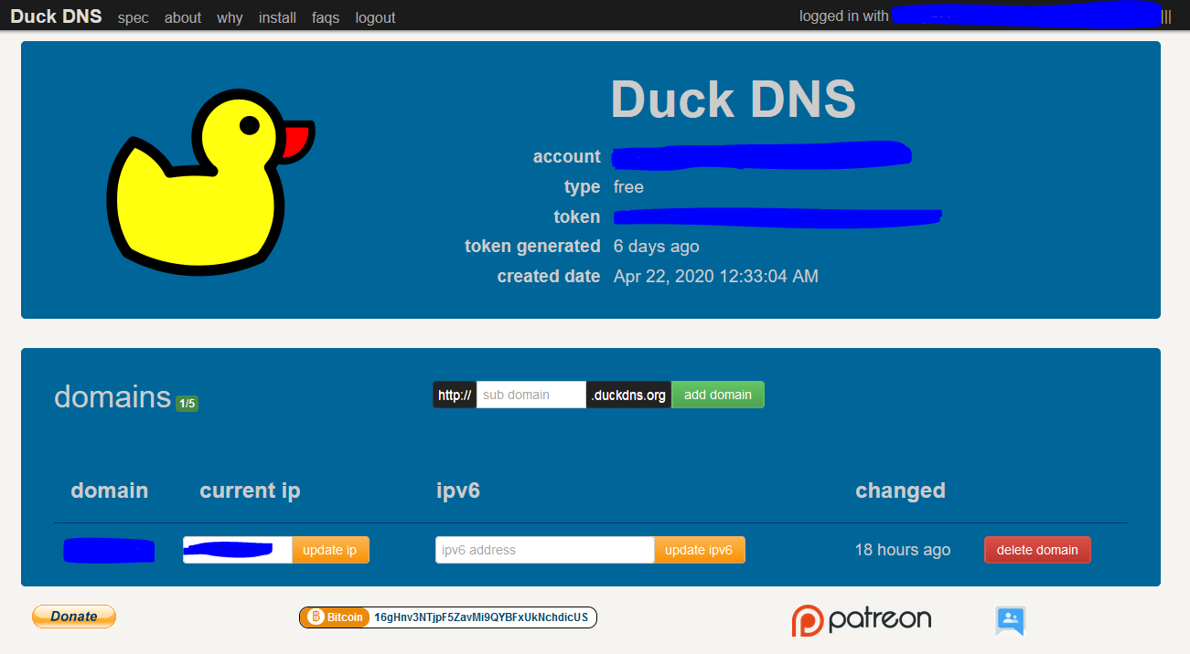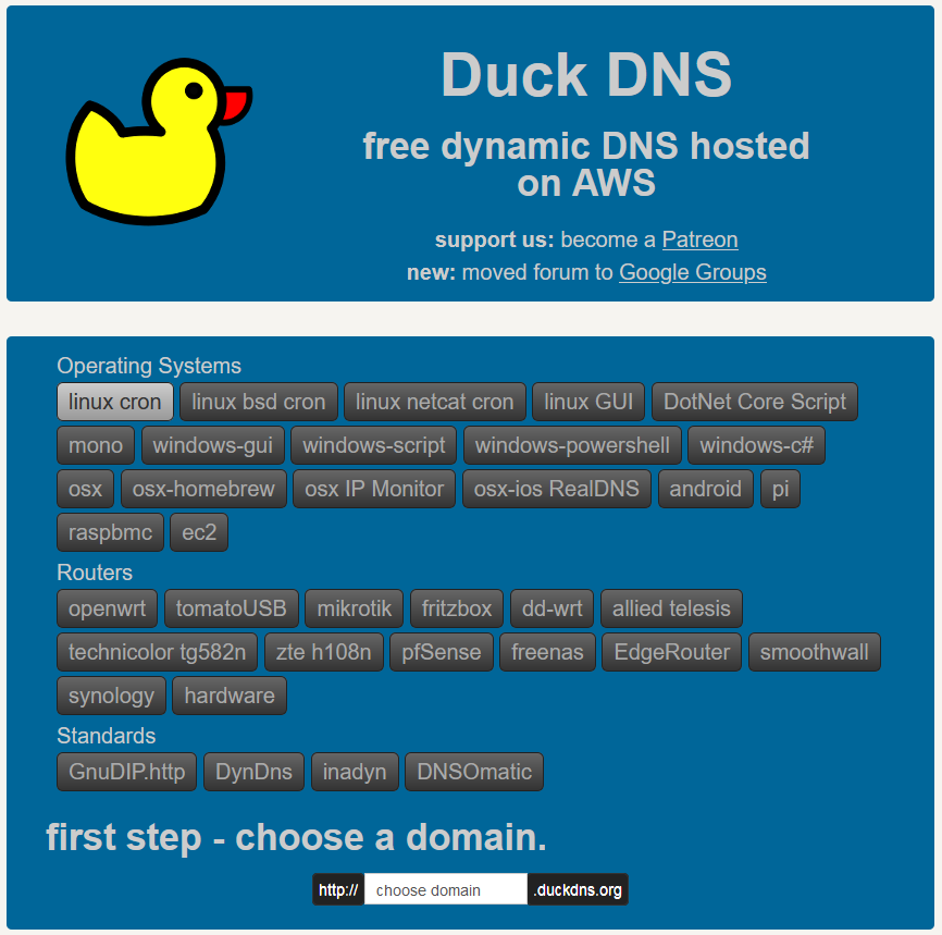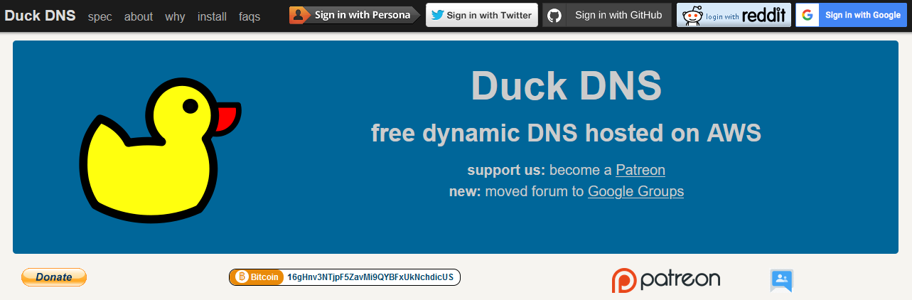 If we visit DuckDNS's website, we will see something like this;