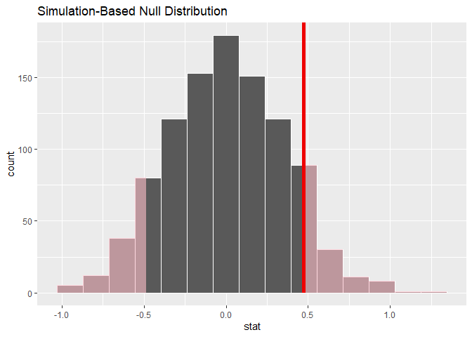 ## We can use a more generalizable approach to calculate the p-value, where we simulate data from the distribution