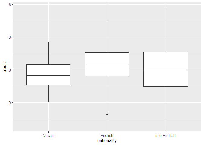 nationality = c(rep('English', 60), rep('non-English', 100), rep('African', 40)),
