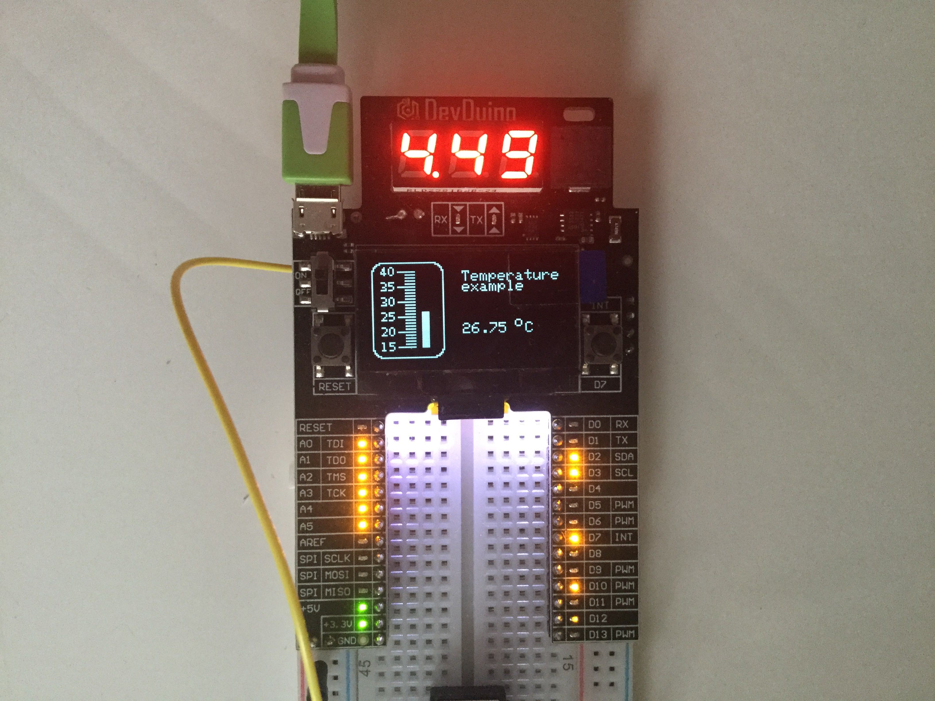 And a similar idea - DevDuino - which also includes built-in buttons, a buzzer, an LCD display and a voltmeter:
