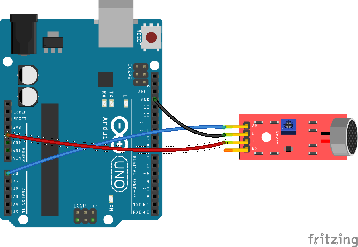 v3 = ["D4", "G4", "G4", "G4", "D4", "E4", "E4", "D4"]The rain sensor detects water that falls on the metal circuit strips on its sensor boards. The sensor board acts as a variable resistor that will change from 100k ohms when wet to 2M ohms when dry. This change in resistence will cause a change in the outout voltage, which we can read using an anlog pin on the Arduino. There is also a digital pin which is pulled HIGH when the resistence falls below a threshold value set by the sensitivity dial (which is another variable resistor)