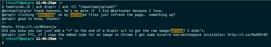 Can't remember if images work in GitHub comments, but this is tweetscan.rb combined with ack to remind me what the trick was to get Droplr direct links. I knew I tweeted it a while ago when I found out, but didn't write it down anywhere else.