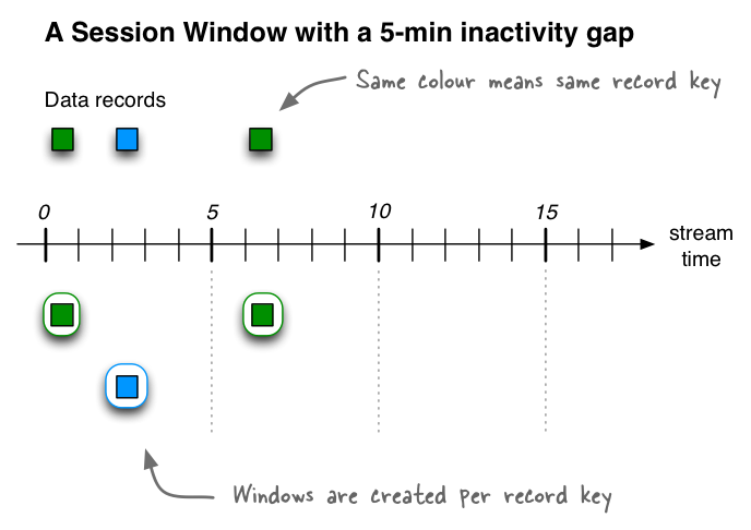 - Session Windows - Dynamically-sized, non-overlapping, data-driven windows