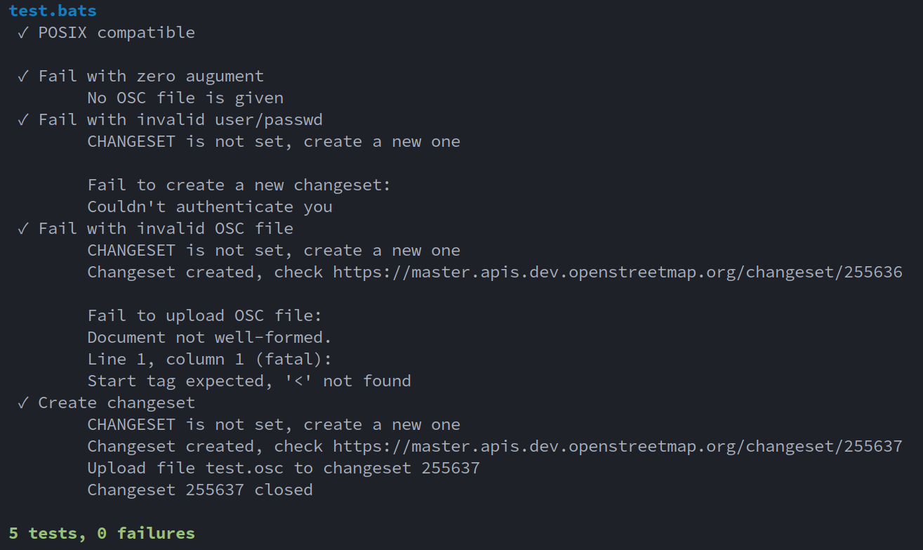 run sh -c 'echo "test comment" | OSM_USER_PASSWD=foo:bar ./osm.api.changeset.commit test.osc'