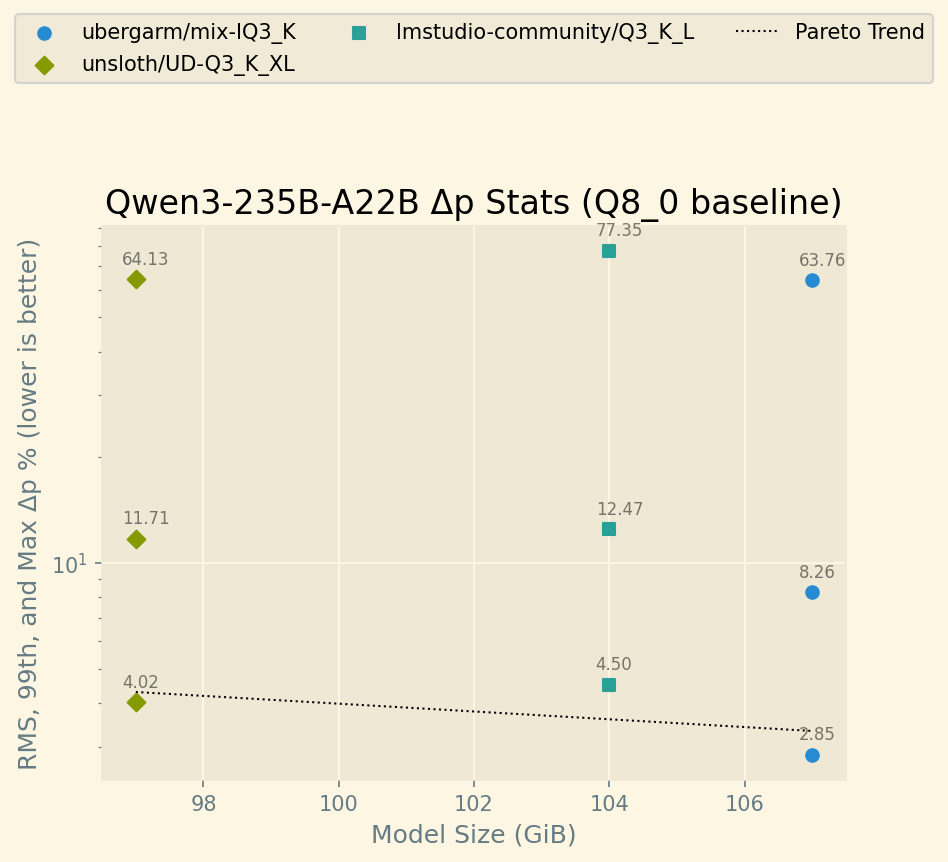 For 235B I had to use the Q8_0 as the baseline given this rig can't easily run the full 400+GiB BF16.