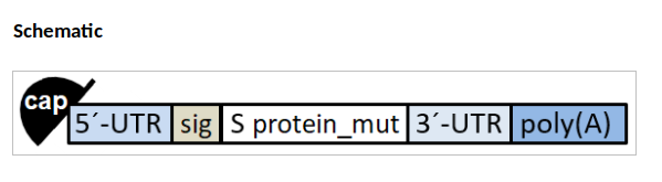 - Orijinal virüsten birebir kopyalanmış, kodonları iyileştirilmiş, "spike" proteininin gitmesi gereken yere gönderen sinyal peptidi