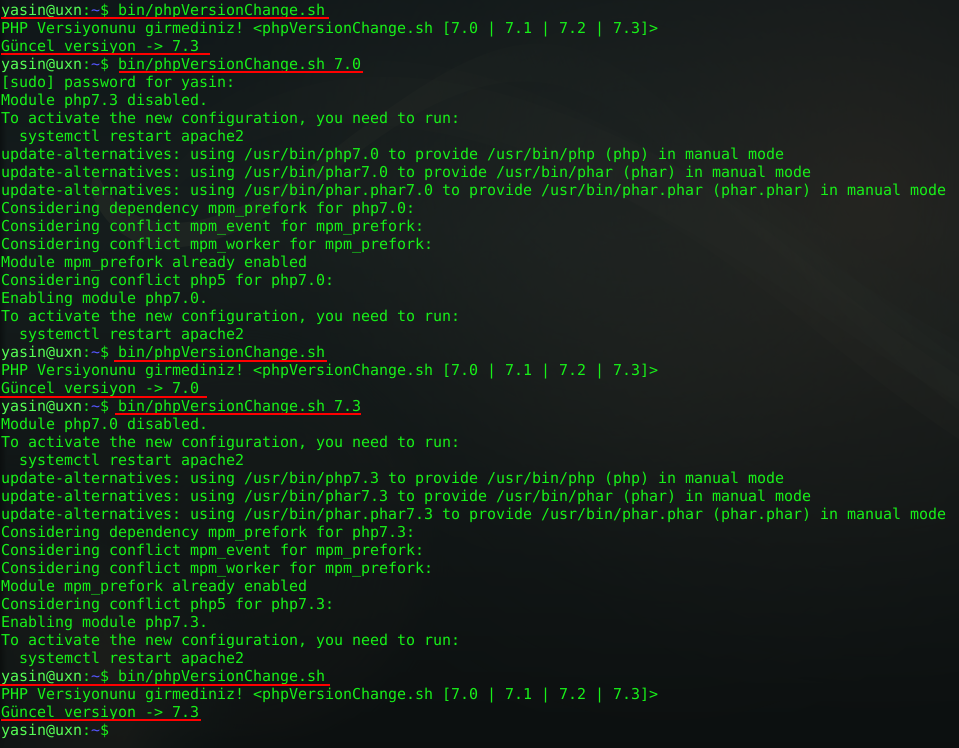 PHP için sistem geneli versiyon değiştirme scripti
