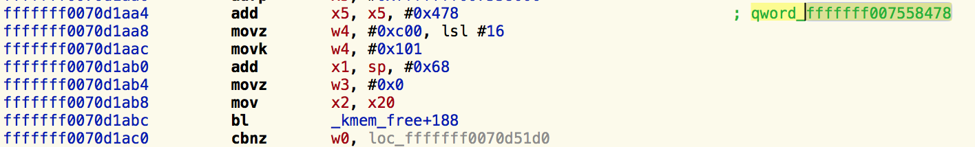 adrpinstruction and the offset at theaddinstruction (example0xfffffff00760d000and0x218) - Type