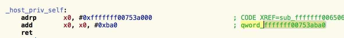 kernelcache.release.xxx.decin Hopper - Search for host_priv_self under the Labels tab