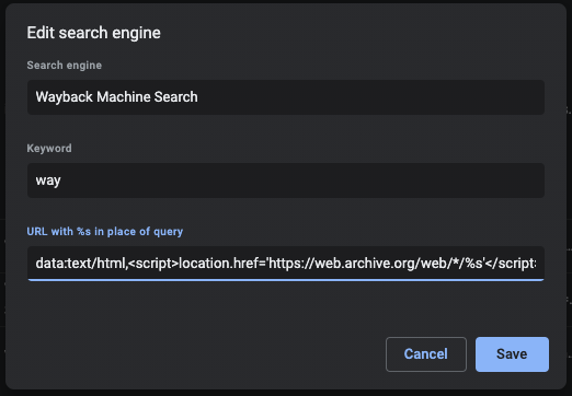 data:text/html,<script>location.href='https://web.archive.org/web/*/%s'</script>