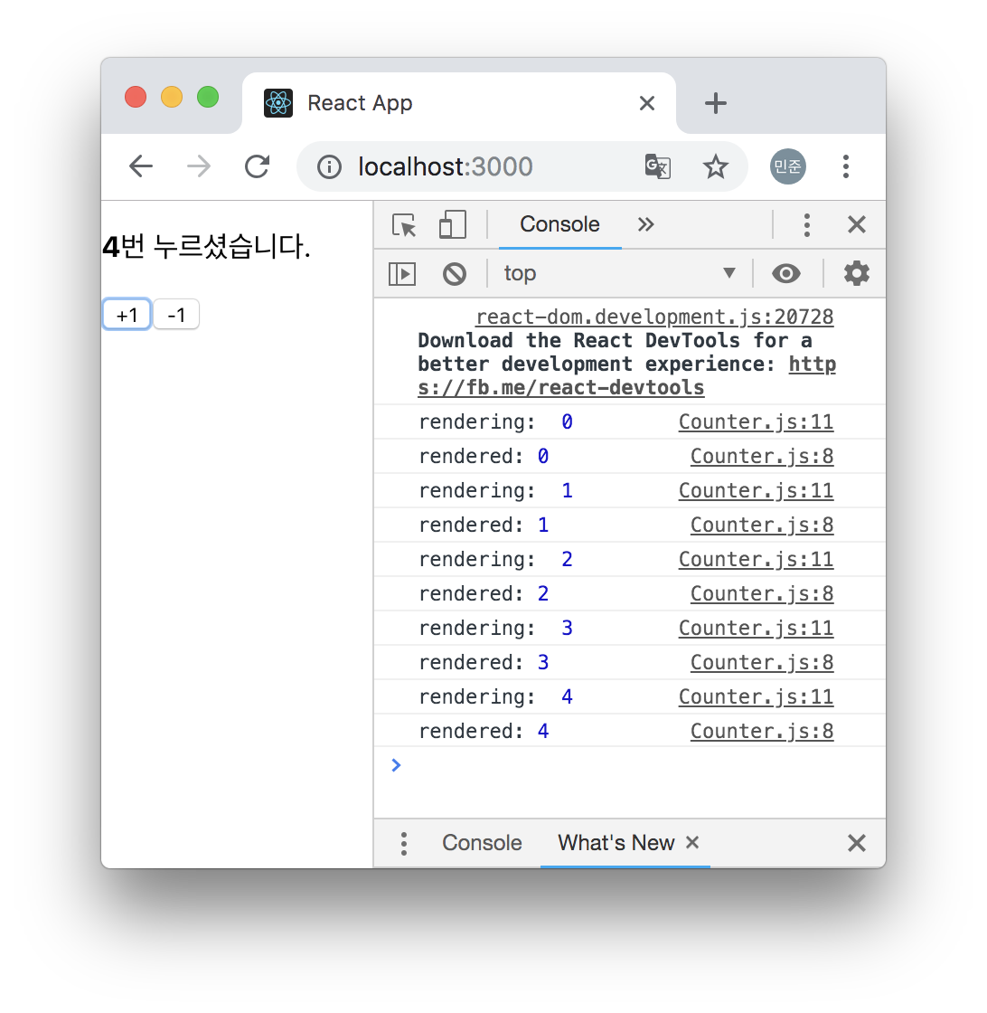 export default Counter;다시, Counter 를 App 에서 렌더링하세요: