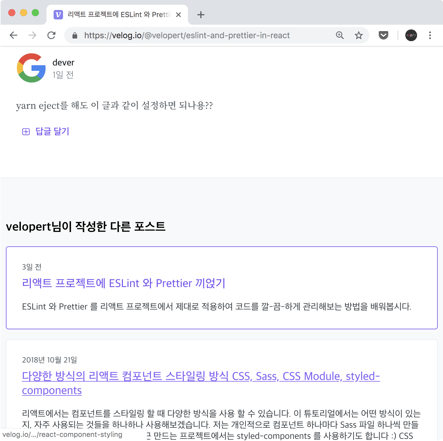 가끔씩은, 우리가 똑같은 작업을 componentDidMount 와 componentDidUpdate 에서 구현해야 할 때가 있습니다. 예를들어서 velog 에서 포스트 하단에 뜨는 다른 포스트를 누르면 같은 종류의 페이지에서 url 만 바뀌게 됩니다.