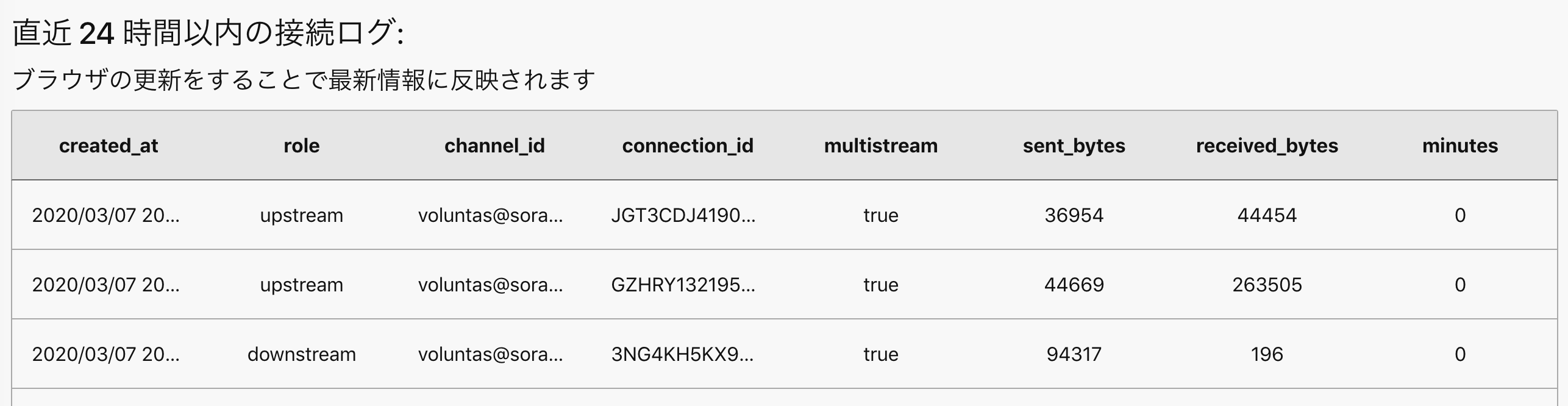 24 時間以内の接続ログが表示されます。