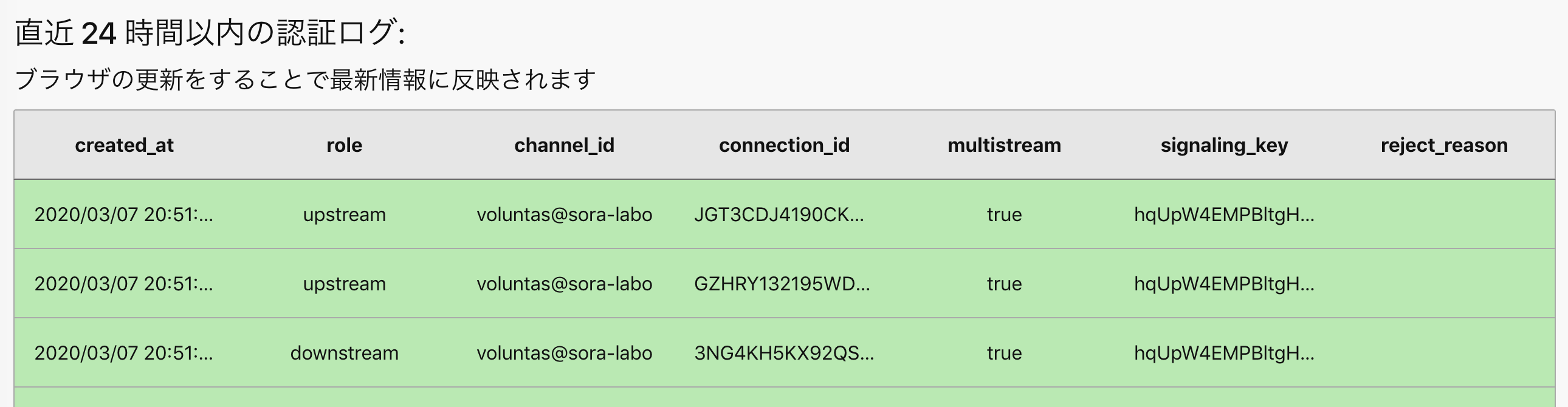 24 時間以内の認証ログが表示されます。