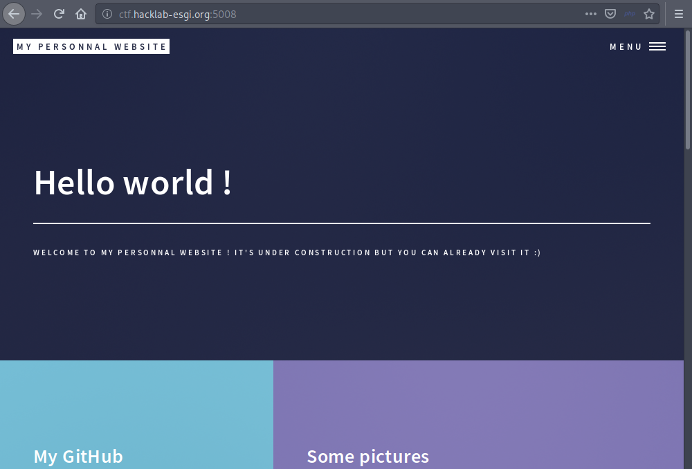 L'énoncé nous donne deux ports TCP, un service HTTP et un accès SSH. Nous pouvons donc d'ores et déjà supposer que nous trouverons de quoi nous connecter en SSH via le site Web.