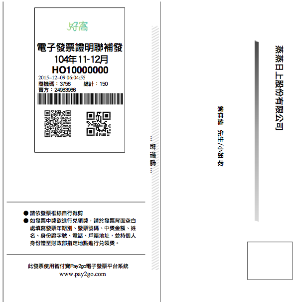 2.中獎發票怎麼處理? pay2go 的做法是會把有中獎的訊息發 mail 給公司與消費者,再由公司這邊印出寄給消費者。