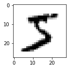 plt.show()#### plt.imshow ... 顯示訓練資料的第一張圖片 跟文字雲一樣的#### cmap='binary表示以黑白圖片顯示