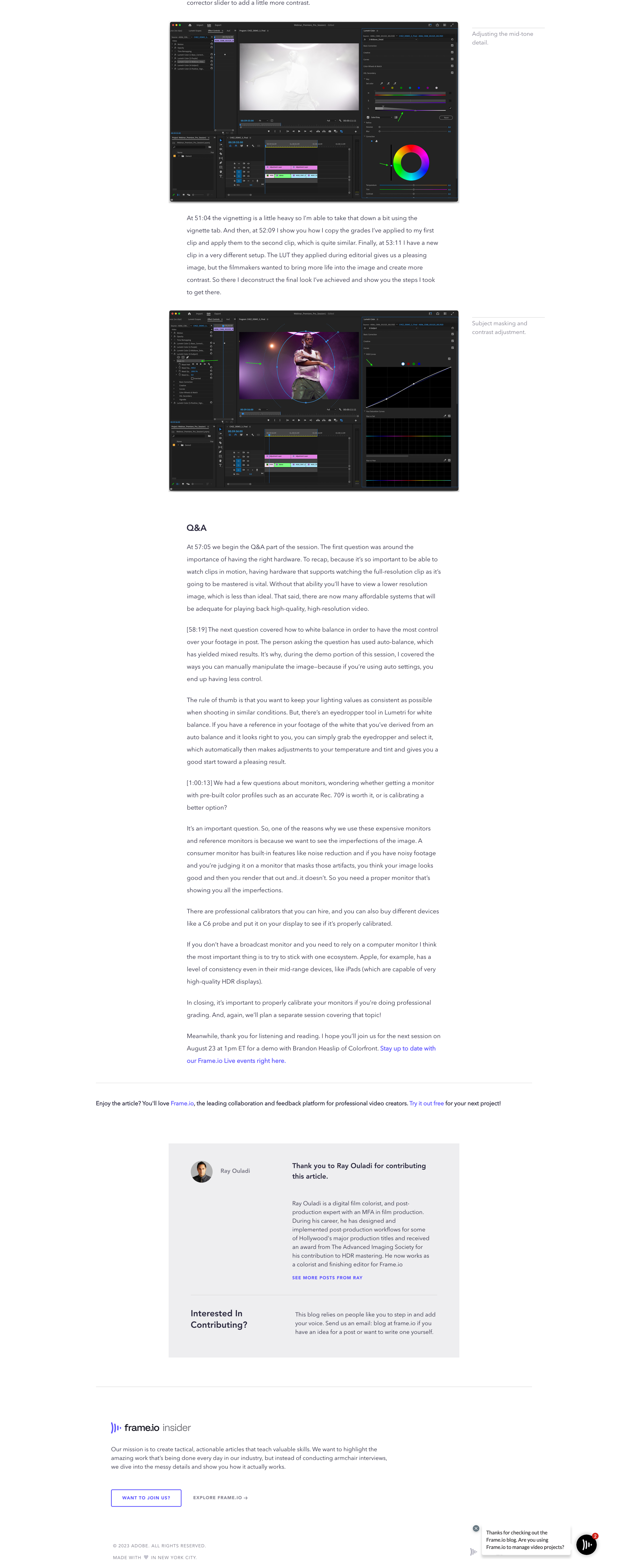 Software Engineering :: Web :: Development :: Design :: Inspiration :: Blogs :: Frame.io Insider ⪼ Made with 💜 by Polyglot. .. Frame.io Insider Article Frame.io Connections: Color Grading Essentials in Premiere Pro