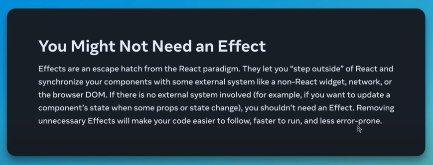 Effects should usually synchronize your components with an external system. If there's no external system and you only want to adjust some state based on other state, you might not need an Effect.