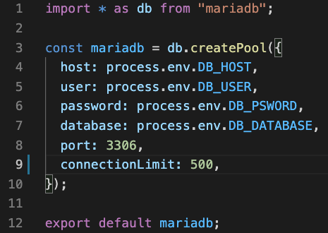 다만, 이를 온전히 이해하기 위해서는 Node와 MariaDB가 연결되는 방식인 Pool에 대해서 이해하고 있어야한다. 간략하게 말하자면, Node와 MariaDB가 연결될 때 (위 코드에서는) Pool 을 생성하여 연결하고 있는데, Pool은 각 Connection을 담고있는 공간이라고 볼 수 있고, 즉, DB 요청을 위한 500개의 Connection이 Pool 안에 생성된다는 말이다. 자세한건 구글링.