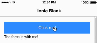 We need to add a button using Ionics components (which already have some basic styling!) and tell it to call the function once someone clicks that button.