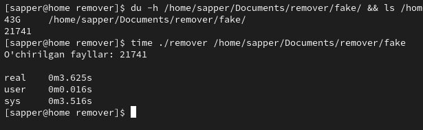 funksiyalari kattaroq hajmdagi fayllar sonida muammo chiqarishi ko'pchilik amaliyotida kuzatilgan. Yuqoridagi C kod aynan shu muammoni bartaraf etish va tmp fayllarni kerakli papkalardan tozalash uchun qo'l keladi