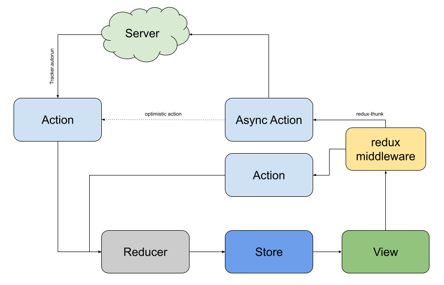 An implementation of redux with meteor for full stack reactivity and unidirectional data flow. Components are designed to work in isolation, taking state from the redux store or from the database directly, ensuring drop-in code resuability across different views.