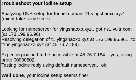 sudo iodine -f -P password 45.76.7.184 t1.yingshaoxo.xyz