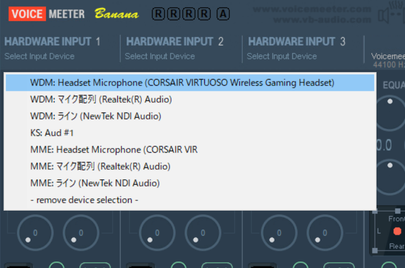 Voice Meeter Bananaは次の入出力デバイスが用意されている。