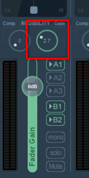Gateはある一定の音量以上にならないと入力をカットする機能。 会話をしていないときに入る空調の音のような、常に小さく鳴り続けている音に対しては、Gateを調整することで軽減することができる。