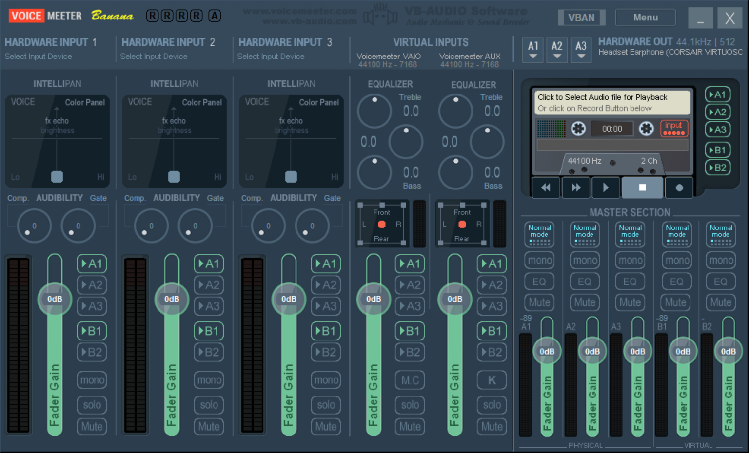 Voice Meeter Bananaを起動すると次のような画面が表示される。