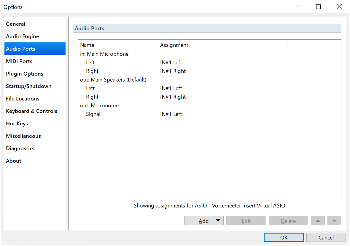 - Audio Driver : ASIO - Voicemeeter Insert Virtual ASIO