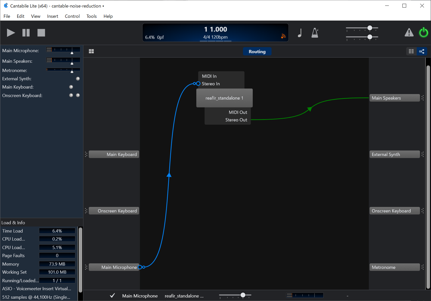 Main Mic → reafir_standalone → Main Speakersを接続する