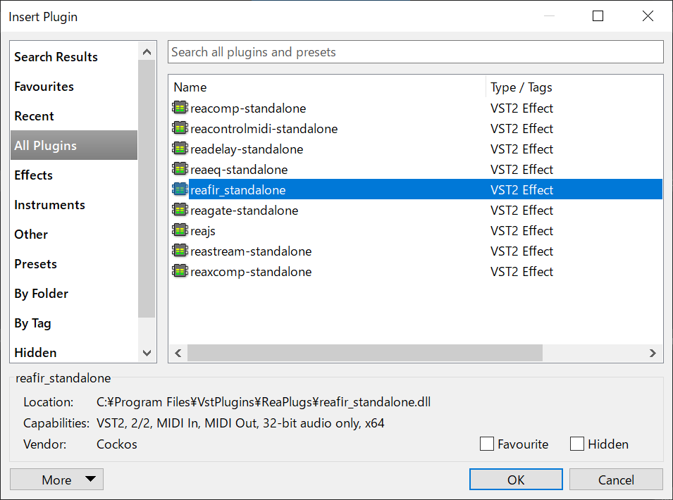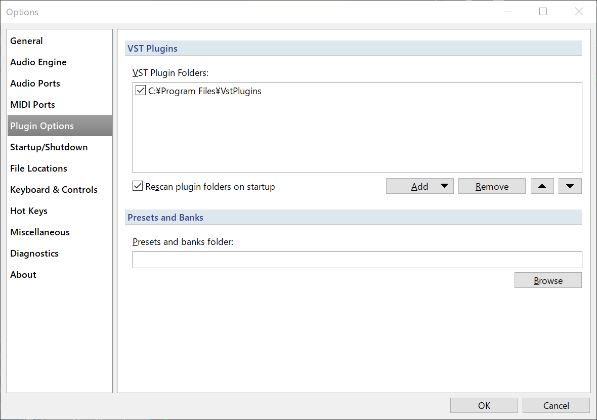 - VST Plugin Folders : C:\Program Files\VstPlugins