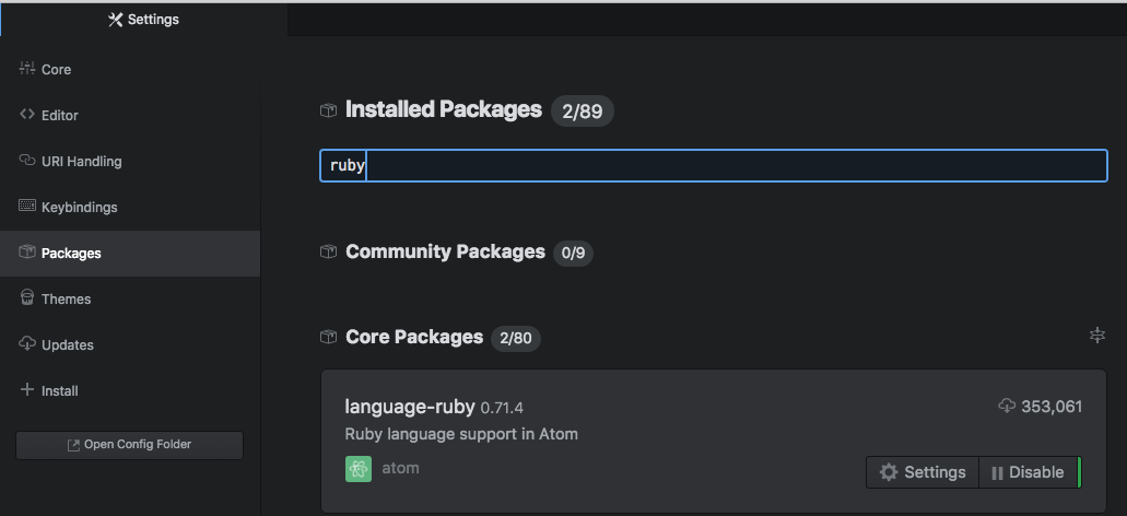So, to find the scope, you'll need to into your installed packages and find the language you want to create a snippet for. To do this, go to Atom > Preferences > Packages and search for the language you want.