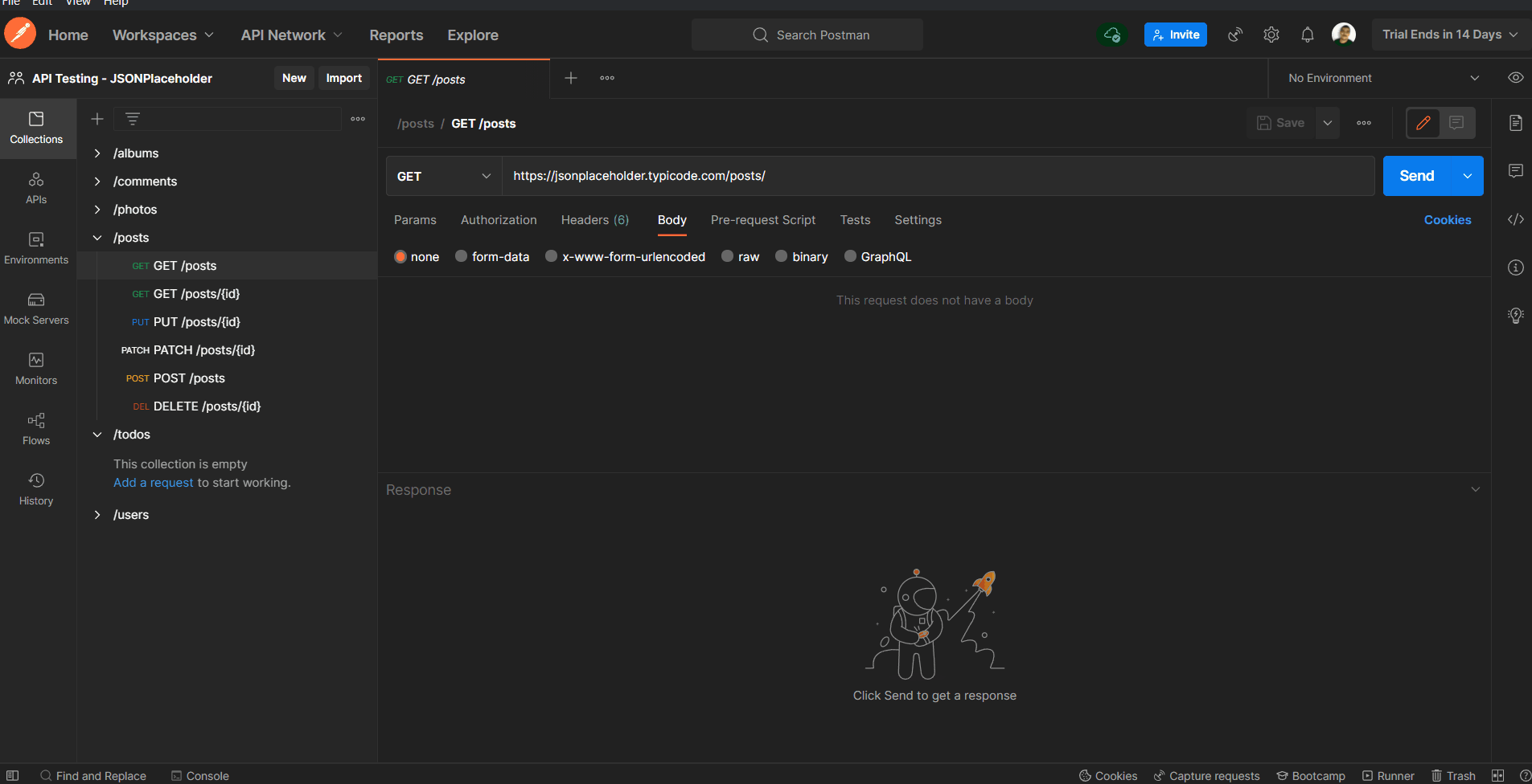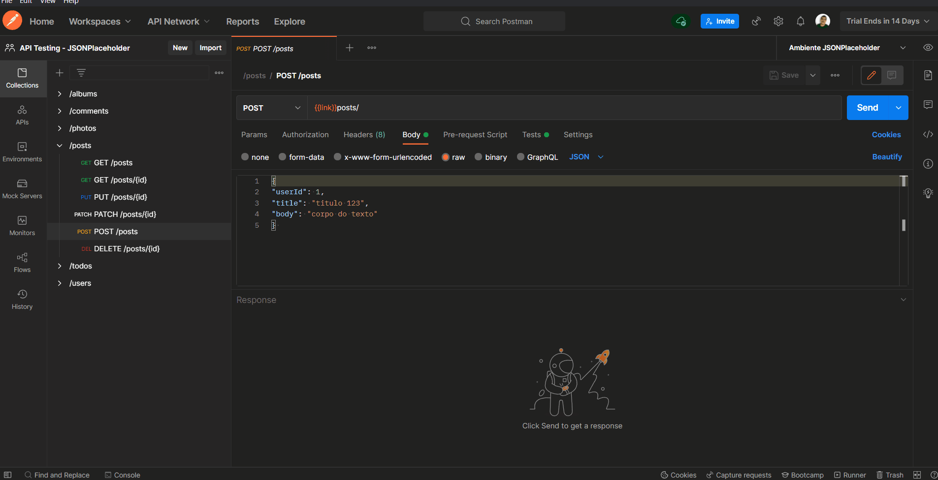 Neste tópico, realizaremos todas as mais comuns requisições no endpoint /posts e analisaremos as suas respostas.