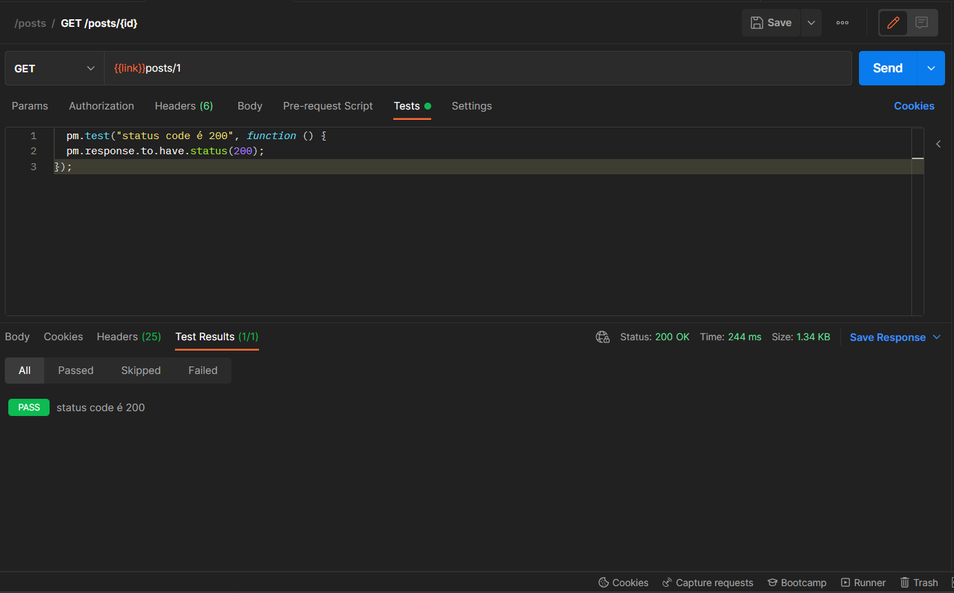 Repare que, tendo um status que valida o status code, se ele for igual o esperado o resultado é positivo para o teste. ✅