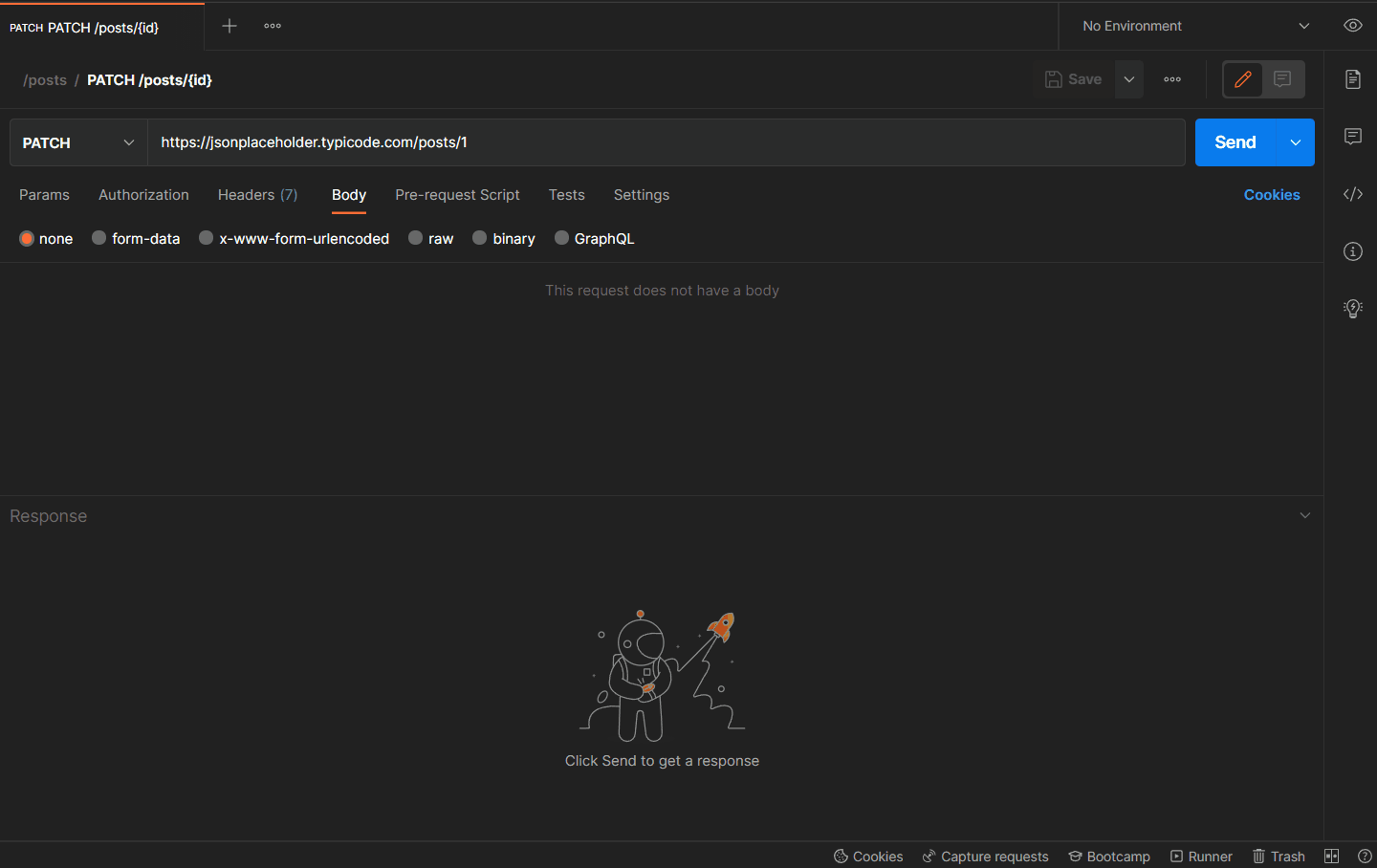 Para realizar a requisição PATCH no endpoint /post/{id}, deve-se passar no corpo somente os campos que serão alterados na estrutura do id referido. Esses dados irão sobrepor somente os campos que foram passados no corpo da requisição, diferente do PUT.