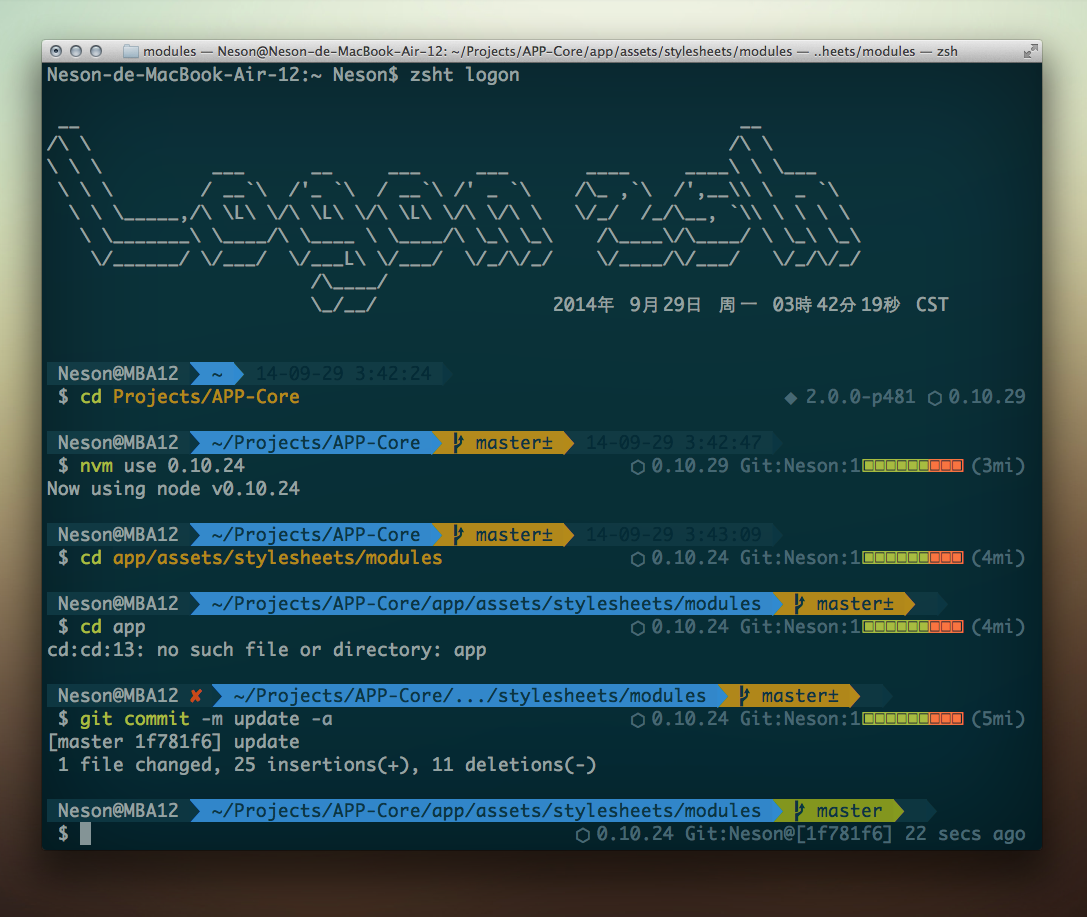 logon.zsh-theme - a theme for ZSH with Powerline, Git, NVM, RVM status and responsive design