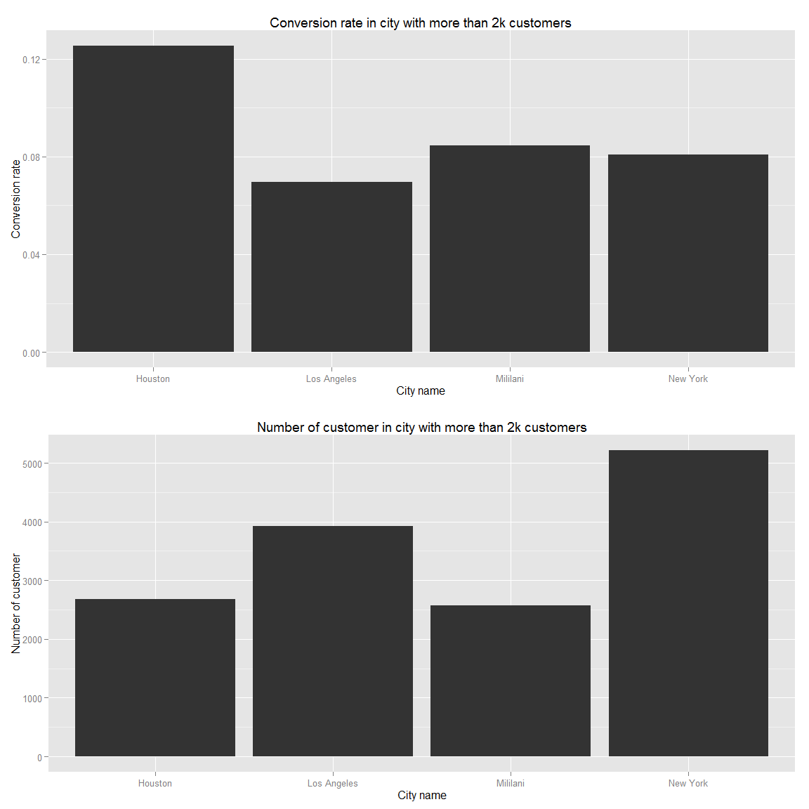 grid.arrange(g.premium.conversion,g.premium.nbObservation,ncol=1)As we have seen so far, Peru and Mexico have very high potential since their conversion rate are the highest. Canada and the USA are following them. However, the USA has way more customer than the others. Therefore, focusing on them primarely make sens. Additionally, we should look into demographically where these users are to do special targeting campaign only for these cities.