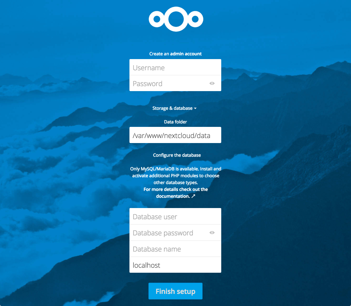 18. Open your browser and browse the server domain name that you specified before: "example.com". You should see NextCloud setup wizard to complete the installation.