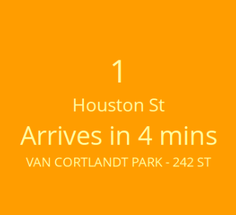 Subway Info is a Dashing widget which displays information on trains in New York City. Information includes train line, direction, station and arrival time. You can customize it to include any combination of lines and stations. This may also be used in other cities as well if you have the appropriate GTFS files.
